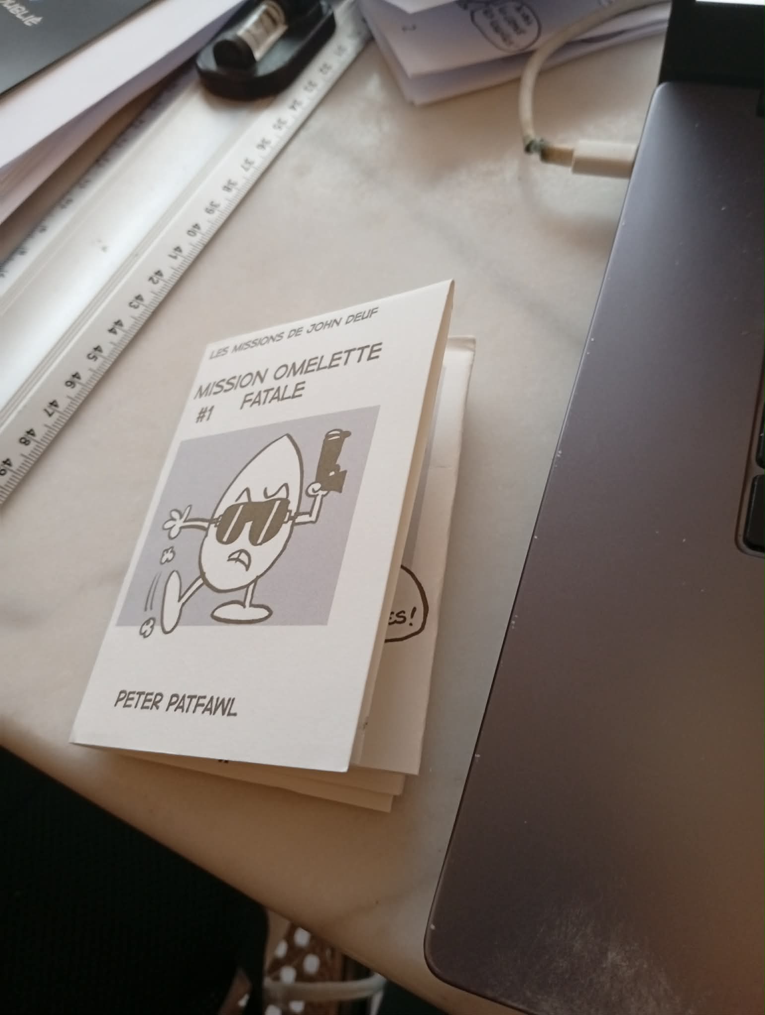 Pour ceux qui ne peuvent pas venir me claquer la paluche en vrai, pas de panique dans le frigo : ma boutique en ligne reste ouverte comme un bar de nuit, et sur Patreon, pour 5 euros par mois, vous recevez mes petits comix maison (Spencer Spook, The Patfawl Comix) et tout un tas de bonus qui sentent bon l’encre fraîche.